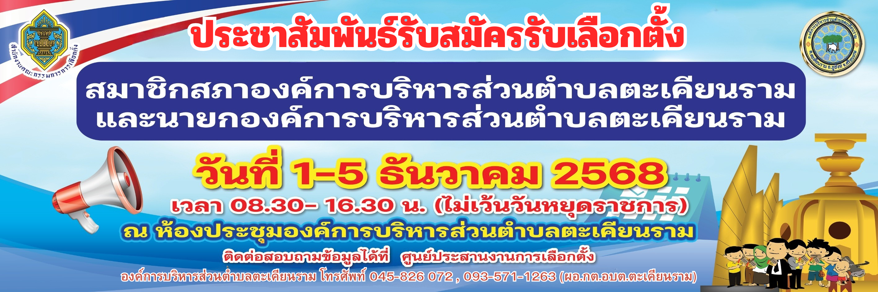 ประชาสัมพันธ์รับสมัครรับเลือกตั้งสมาชิกสภา อบต.ตะเคียนราม และนายก อบต.ตะเคียนราม ปี 2568 |