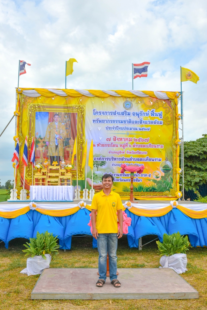 วันพุธ ที่ 7 เดือนสิงหาคม พ.ศ. 2567 เวลา 08.00 น. นายในย แพงตา นายกองค์การบริหารส่วนตำบลตะเคียนราม ประธานเปิดโครงการส่งเสริม อนุรักษ์ ฟื้นฟูทรัพยากรธรรมชาติและสิ่งแวดล้อม ประจำปีงบประมาณ 2567 พร้อมคณะผู้บริหาร ข้าราชการพนักงาน อบต.ตะเคียนราม กำนันผู้ใหญ่บ้าน ผู้ช่วยผู้ใหญ่บ้าน คณะครูนักเรียน โรงเรียนบ้านตะเคียนราม โรงเรียนบ้านตาโสม คณะโรงพยาบาลส่งเสริมสุขภาพตำบลตะเคียนราม และผู้มีจิตอาสาสาธารณะ เพื่อส่งเสริม ปลูกฝัง สร้างจิตสำนัก และการสร้างกระบวนการมีส่วนร่วมของส่วนราชการ ชุมชน และประชาชน มีใจรักป่าไม้ หวงแหนทรัพยากรธรรมชาติและสิ่งแวดล้อม ทั้งยังสามารถสร้าง และส่งเสริมสนับสนุนเป็นแหล่งท่องเที่ยวเพื่อกระตุ้นเศรษฐกิจชุมชน ณ บริเวณที่สาธารณะห้วยกระโดน หมู่ที่ 6 ตำบลตะเคียนราม อำเภอภูสิงห์ จังหวัดศรีสะเกษ